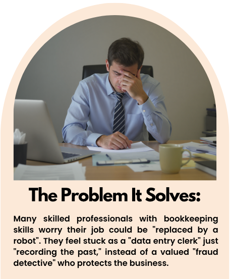 They feel stuck as a “data entry clerk” who just “records numbers,” not a valued “fraud detective” who protects the business.