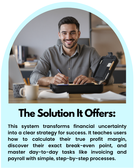 To turn financial uncertainty into a clear strategy for success by finding a simple system that helps them confidently calculate their break-even point, understand their profit margin, and manage daily financial tasks.