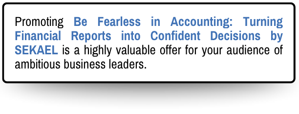 Welcome to the affiliate program for Be Fearless in Accounting: Turning Financial Reports into Confident Decisions by SEKAEL! We are thrilled to partner with you to help ambitious founders and managers transform confusing financial data into their most powerful tool.