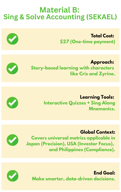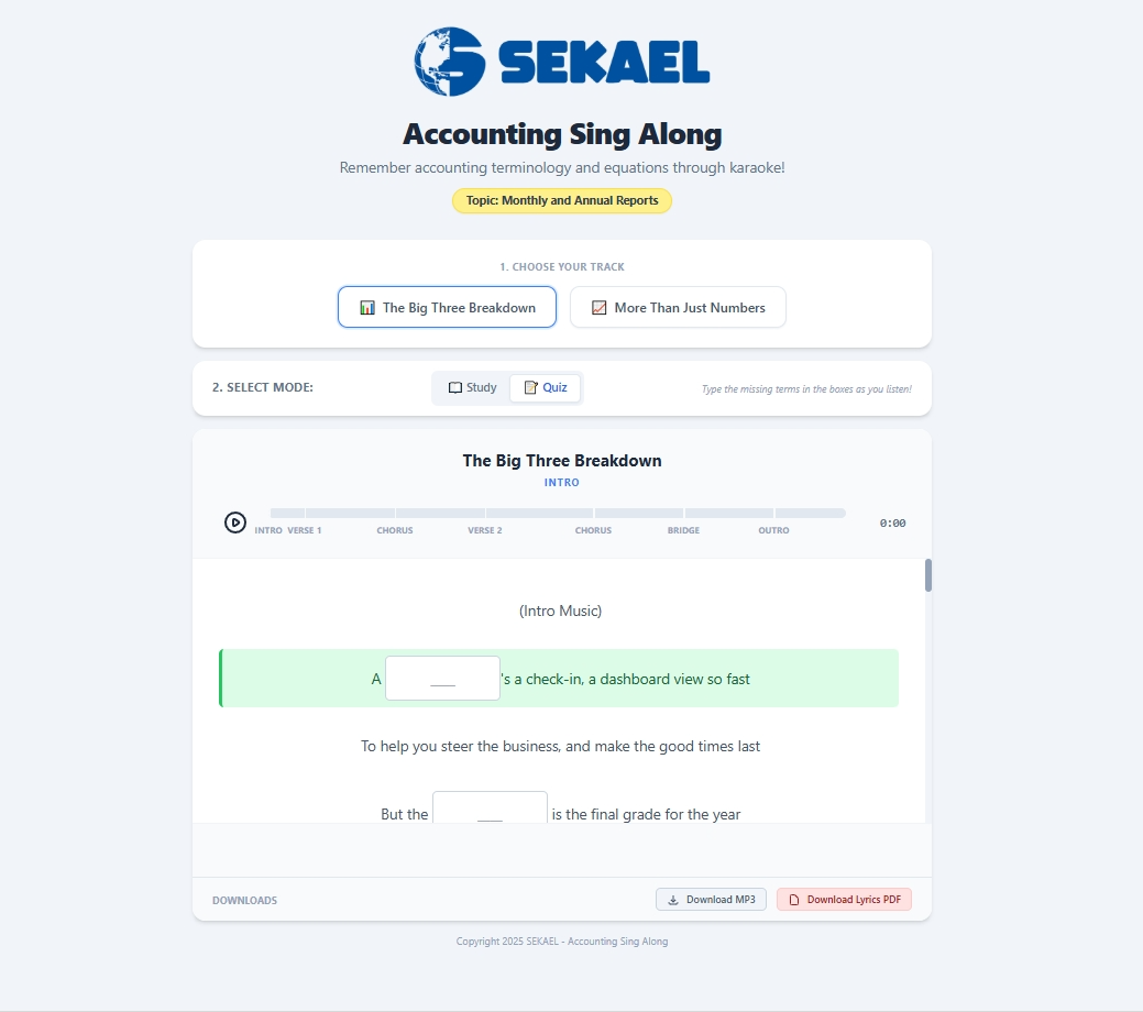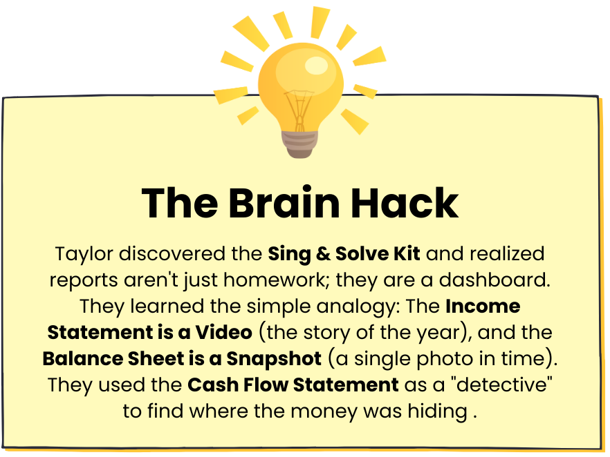 The only accounting system that combines real-world stories, interactive games, and karaoke to turn “report paralysis” into strategic mastery.