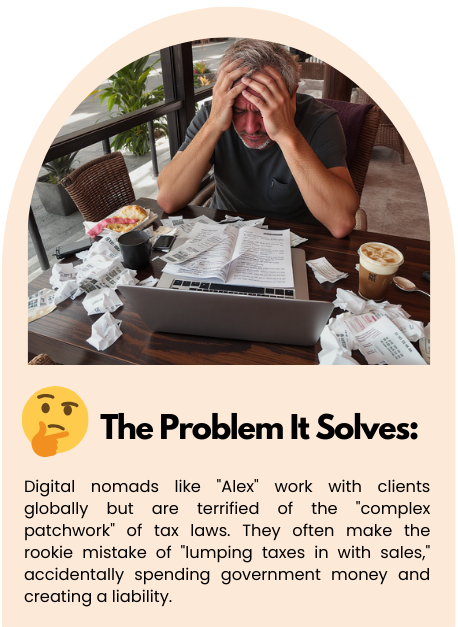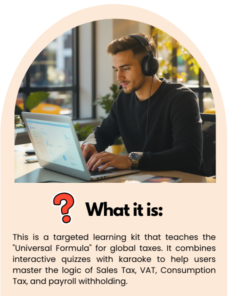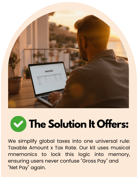 1. Meet Alex. Alex was a talented digital nomad but a terrified business owner. Every invoice triggered panic about tax rates and compliance. Then Alex found the Sing and Solve Kit. Alex learned the “Universal Formula”: Taxable Amount x Tax Rate. Alex used karaoke tracks to memorize the rules and interactive quizzes to practice. Now? Alex is a Global Pro who knows exactly which part of every dollar is theirs to keep. Be like Alex. Get the kit for just $27. [YOUR UNIQUE AFFILIATE LINK]