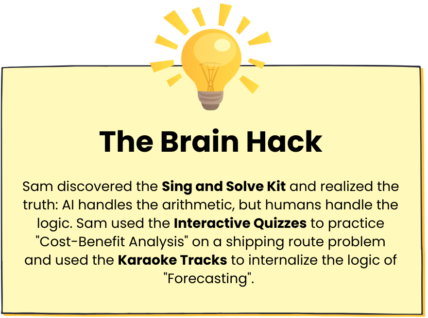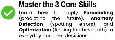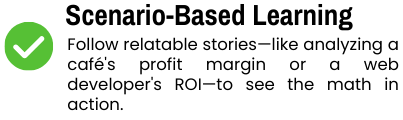 We break down complex analytics into simple stories. You’ll learn by following real scenarios—like optimizing a café’s profit margin or forecasting a project’s ROI—rather than memorizing abstract theories.