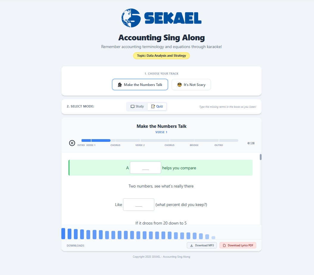 The only accounting system that combines real-world strategy, interactive simulation, and musical mnemonics to turn “data entry” into executive decision-making.